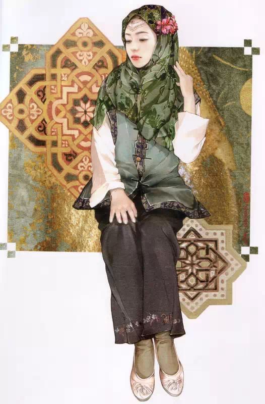 44、塔吉克族 (tǎ jí kè zú)塔吉克族雖然有歐羅巴人種的特徵,但從遠古時代起,他們就生息繁衍在中國這塊土地上。現百分之六十的塔吉克族人聚居在新疆塔什庫爾干塔吉克自治縣,其餘分佈在沙東、澤普、葉城和皮山等縣。1954年7月17日建立塔吉克自治縣。塔吉克族的節日與當地維吾爾族、烏孜別克族、柯爾克孜族等信仰伊斯蘭教的民族基本相同,其節日食品也大致相似。每年齋月前的一個月,塔吉克人都要舉行巴羅提節。奇地前笛爾節是塔吉克族人最重視的節日,相當於漢族的春節,多在三月舉行。