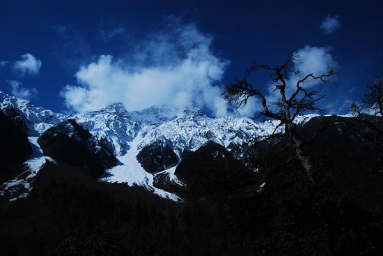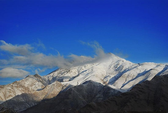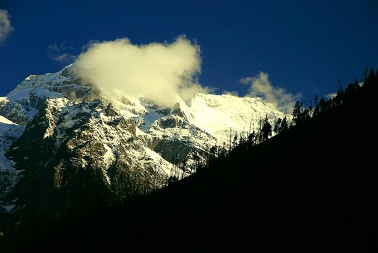 7、通過陰面山體的陪襯:處在陽面(受光面)的山就顯得尤為突出。一般在拍攝山的時候,拍攝位置與陽光呈90度為較佳,因為側光可以突出山的立體感,有陰有陽 ,明暗反差較強。一般在正面光或者逆光下,較難體現山的立體感與質感。
