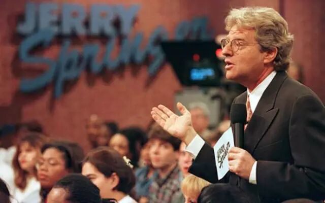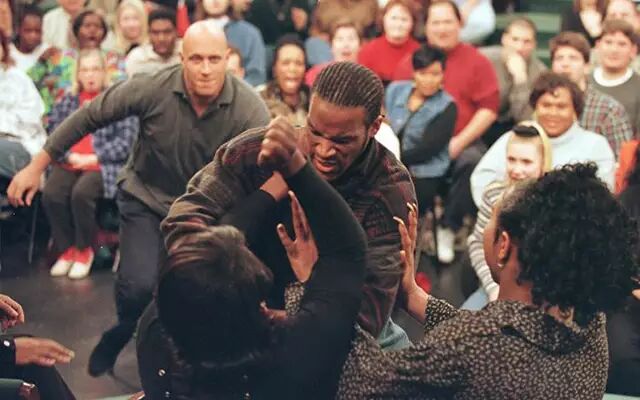 從頭說起。1991年秋,曾經當過辛辛那提市市長的記者傑瑞·斯普林哥,搞了一個電視話題節目,邀請嘉賓列席,談當時美國的社會問題。這個節目很快從初播時的默默無聞,突然間名聲大振,是因為主持人斯普林哥偶爾請了一對普通人陪聊,結果最出色的恰恰是這對微胖的、相貌平平的普通人,他們在節目上大放厥詞,完全跑題,互相揭短,最後大打出手。那次節目上了晚間新聞。斯普林哥從此知道芝麻開門,打開收視率的秘密咒語是什麼了。他不再邀請名人嘉賓,只請普通人列席。談的也不是犯罪率啊,黑人貧困啊這種跟《紐約時報》時評版競爭的重大話題,他專走「三俗」路線,讓列席嘉賓當著電視觀眾的面,互揭隱私, 中國電視話題秀里的「撕」要到二十年後才浮現呢。斯普林哥的撕B秀,已經無師自通地火爆了近三十年!至今存在。斯普林哥是上海「老娘舅」節目的骨灰級原版。斯普林哥節目的內容,不外乎是媽媽搶了女兒的男朋友,小姨子跟姐夫「有一腿」; 可撕的還有家庭矛盾,子女間財產分配不均,父母偏心誰了;弟弟偷了哥哥的錢,盜用信用卡刷爆······各種奇葩父母對子女的忽視,虐待;那時還沒有「小三」這個詞,只有「情婦」這個頗妖艷老派的詞。斯普林哥的節目專門有一個欄目,叫「秘密情婦,當面對質」(Secret Mistresses Confronted), 夫妻吵架到高潮,讓情婦現身,三人當場對打。為了增添節目的火爆,斯普林哥還假惺惺地在節目的尾聲,給每個嘉賓遞上一杯水,讓大家喝口水消消火,結果這杯水當然被怒氣沖沖的嘉賓當武器,潑到仇恨的人的臉上。被當作武器掄過去的,還有台上的椅子,把椅子砸過去還不過癮,衝上去,扭作一團,扯頭髮揪耳朵,打得你死我活。