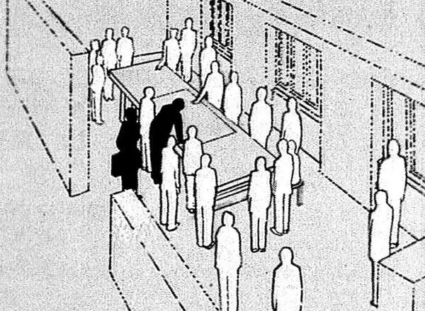 如圖所示,黑色代表了希特勒(前)和施道芬堡(后)的位置,施道芬堡站的地方離元首很近,他的公文包幾乎就放在希特勒的腳邊。