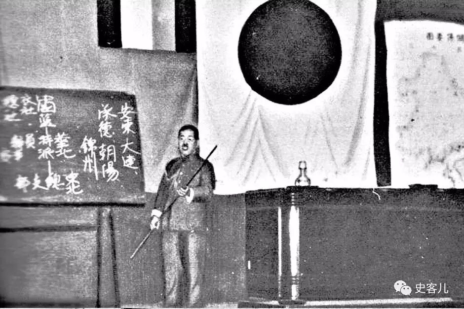 ▲ 圖為1936年,日本在中國東北偽滿境內建立的中學——海城中學畢業式,拄著軍刀的軍官坐在主位,似乎預示著此時的學校,已經成為日本發動侵略的預備役基地。