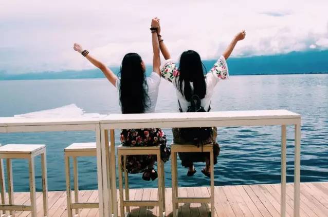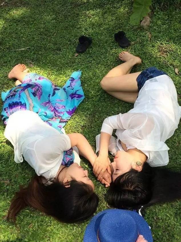 俯拍,從上往下拍。這種角度最能顯出你和閨蜜之間的感情。但是俯拍用頭枕著手,或是側躺,否則很容易出現雙下巴哦。