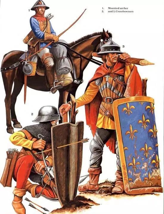 至於法國人,他們這一仗的亮點下馬突擊並沒有收到效果,也自然引不起重視。更糟糕的是對於熱那亞弩手,雖然熱那亞隊長Grimaldi自己都在書信中承認不敵英格蘭弓手,法國人卻不知吃了什麼迷魂藥,還是堅定相信享譽歐陸的熱那亞筋角弩壓制還籍籍無名的簡陋長弓不存在問題,就此埋下更大慘禍的種子。
