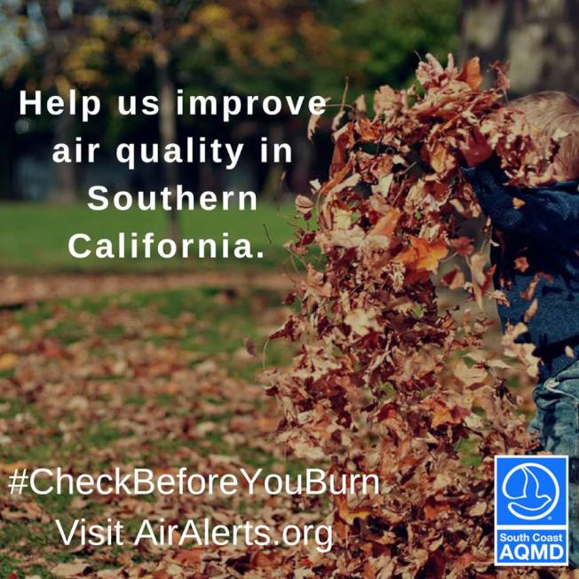 感恩節、聖誕節將至,天氣也逐漸變冷。不少居民想要舉辦燒烤聚會、或以室內用壁爐燒木柴取暖。然而進入11月之後,南加州居民不管是室內還是室外在燒火時,都需提前向南海岸空氣品質管理局(South Coast Air Quality Management District)查明當日空氣質量是否達標,如若不然,用木材燒火將可能會觸犯法律。