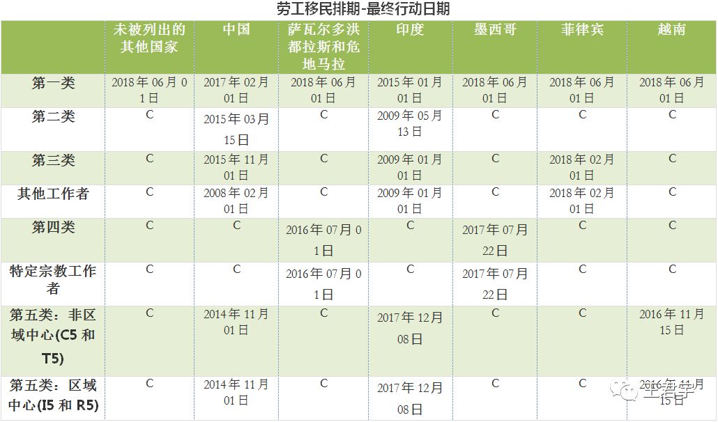 下文的移民排期表是2019年11月最新的移民申請時間。11月是2020財政年度的開始,所以某些勞工移民名額的排期有較大幅度的變化。