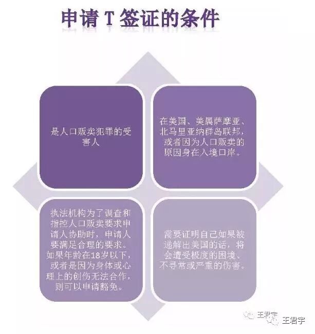 這種情況下,被販受賣人口和性受害都可能符合申請T簽證。T簽證是根據2002年國會通過的「非法偷渡受害人保護法案」所設立。這類簽證旨在通過給特定犯罪的受害者合法身份,來配合有關部門對人販子的調查和訴訟。 該申請人必須在調查或訴訟過程中配合執法機關的工作,並且證明如果申請人被遣送回國,就會遭受非同尋常的困難和傷害。 紐約人口販運干預法院很多賣淫受害者擔心她們如果坦白透露自己的工作會影響她們移民身份或在法庭上受到不一樣的對待。但凡事都有解決的方法,千萬不要因此默默承受不公平和不人道的對待。如果你不符合申請T-Vsia,我們也可以為你辯護你的案子。假如你是受害者,你必須找一個專業而有經驗的律師替你辯護。王律師是在美國少數的亞洲女性律師,並對移民和刑事兩方面都擁有豐富經驗和成功的案例。王律師會親自站在你的旁邊,陪同你度過難關,而且在法官眼中,看見一名亞洲女律師為中國受害者辯護會更有說服力。 王君宇律師樓微信號 ☞w7183539264專精各種疑難案件:移民,刑事,告警察/政府。我們有最優質的服務,最專業的律師和助理團隊。王君宇律師服務華人社區十幾年,幫助無數客人打消遞解令獲得身份。為無數客人在刑事辯護中獲得最好的結果。王律師一直走在法律的最前線,王律師總是能洞悉新的法律信息從而給予客人最好的幫助。