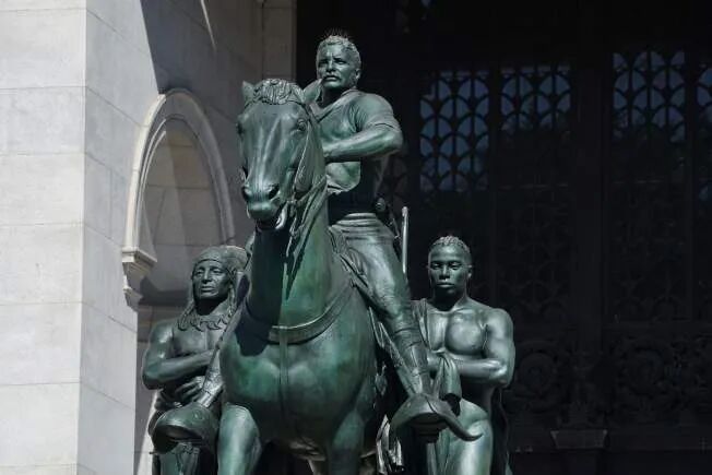 美國自然歷史博物館將移除羅斯福像:原因還用說嗎?政治不正確唄。因為該雕像中羅斯福身旁站著一名非洲裔奴僕,被指政治立場不正確將被拆除,紐約市市長白思豪同意了該決定。小編又納悶了,實在礙眼,您挪後面那位不就得了,要不要這麼大動靜全挪。