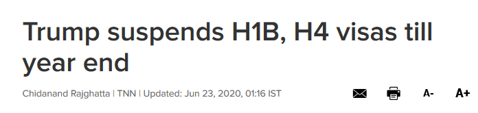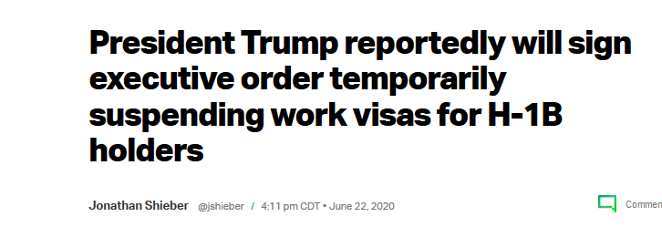 雖然是疫情大流行期間的一項舉動,從美國現在的失業率上來看,這樣的做法沒有什麼可以指責的。但是已經有移民專家認為政府正在以大流行為由尋求採取長期措施。川普政府試圖在大流行期間繼續其嚴限移民的議程,其中包括努力制止南部邊界的大多數移民,並限制在世界各國大使館發放簽證。自10年金融危機復甦后,H1B成為了很多技術型人才留在美國的一條必經之路。