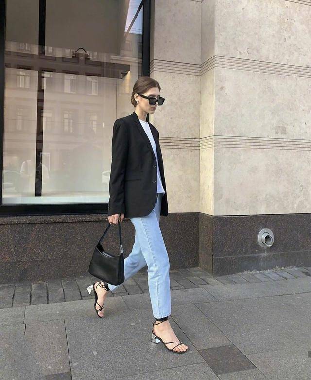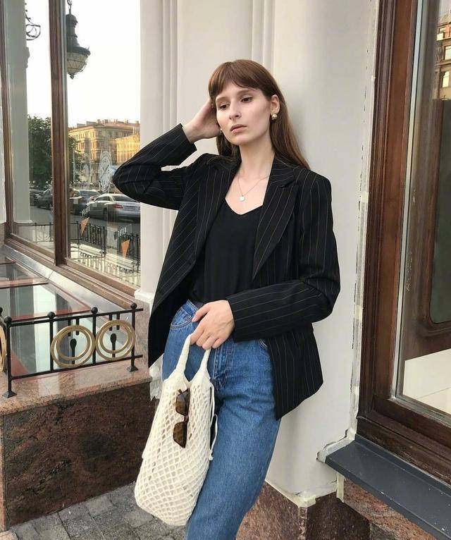 要想要高級感,那麼西裝一定就要有,黑色的西裝外套修身的版型會增加我們周身的氣場,內搭一定要記住選純色的,像lespgdn的白色T恤就很不錯,下身可以配牛仔褲來衝突西裝的嚴肅氣質,既有潮流感也有女人味。