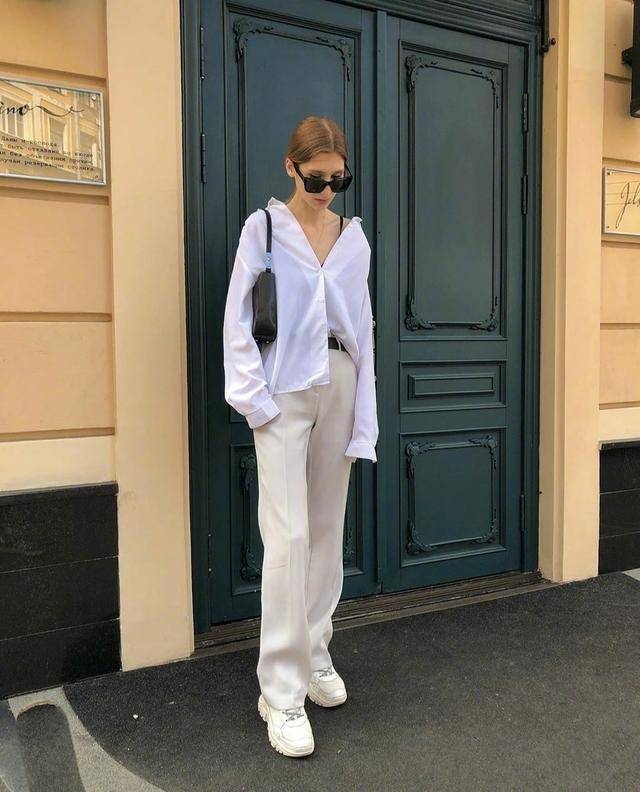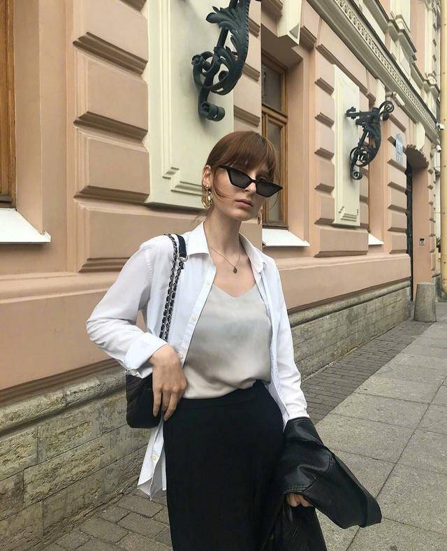 另外的風格就是我們可以把白色的襯衫做為外套,這種穿法也是近幾年才流行起來的,lespgdn可謂是跟著時代的潮流走。內搭可以選擇比較小清新的顏色,比如淺綠色的V領弔帶和黑色的寬鬆褲搭配就特別的養眼。