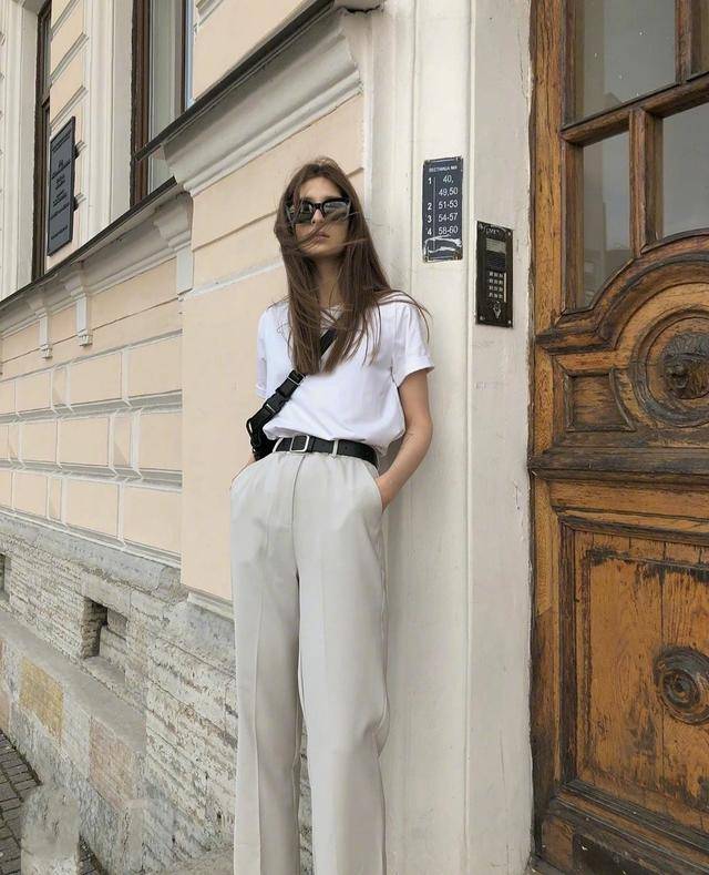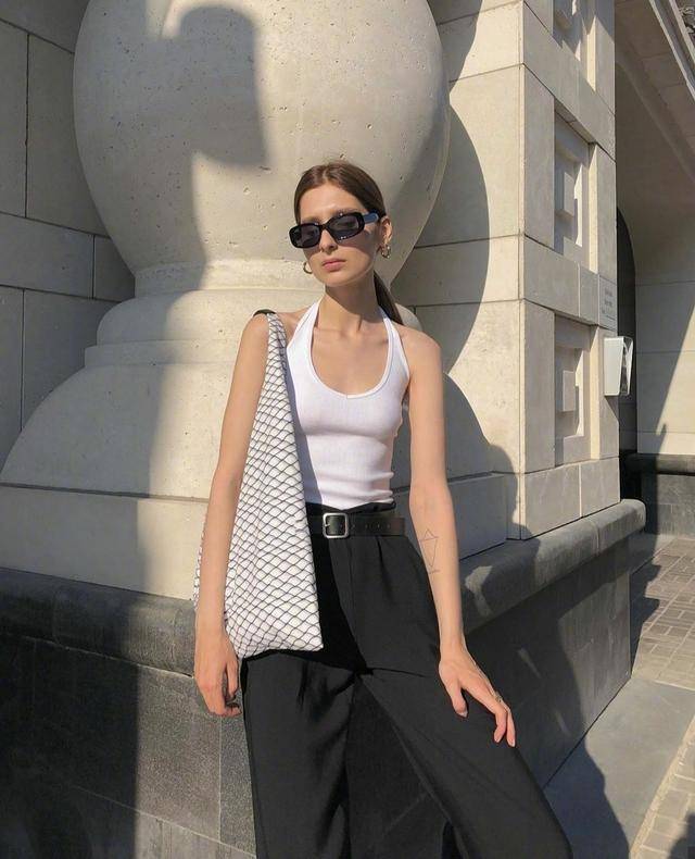 白色其實有一些顯胖,所以我們可以穿「老頭背心」十分的顯瘦,不是露臍的款還能遮住腰間的小贅肉,和黑色的褲子搭配如果想要更加潮流一些,那麼這個時候你就需要一條和褲子顏色一樣的皮帶了,又幹練又顯氣場。