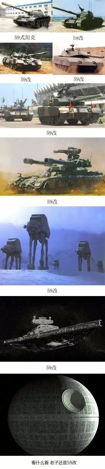 「遠看炮塔嚇死人,近看五對負重輪」「59式殲星艦」「1.2345」
