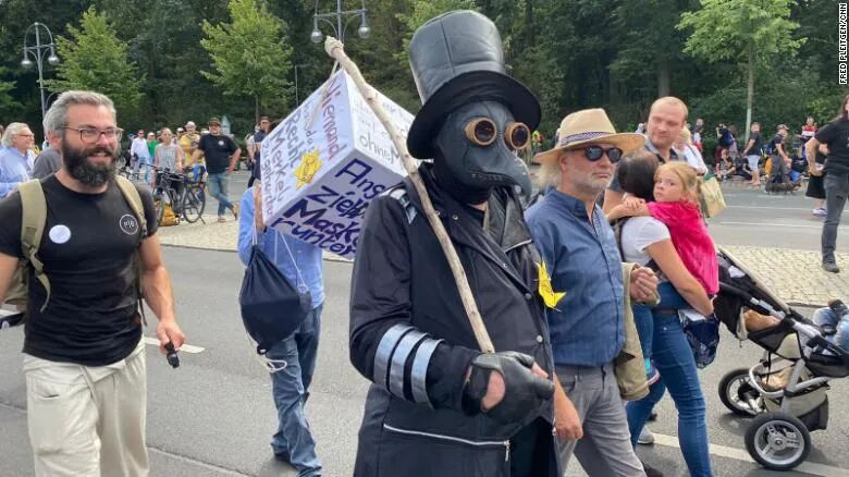 其中包括一些極右翼人士和一些不相信Covid-19存在的陰謀論者,
