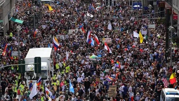 「新冠根本不存在!我們要自由!」歐洲萬人上街遊行這樣大喊道