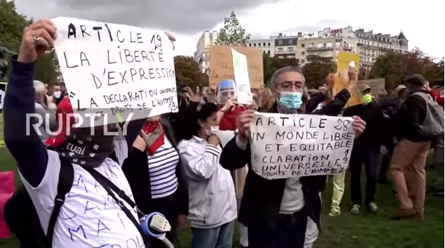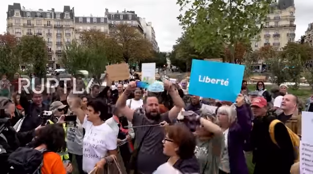 在巴黎,數百人參加了反對強制戴口罩的抗議活動。