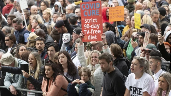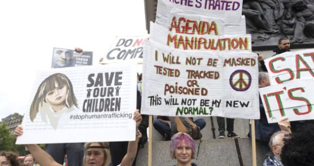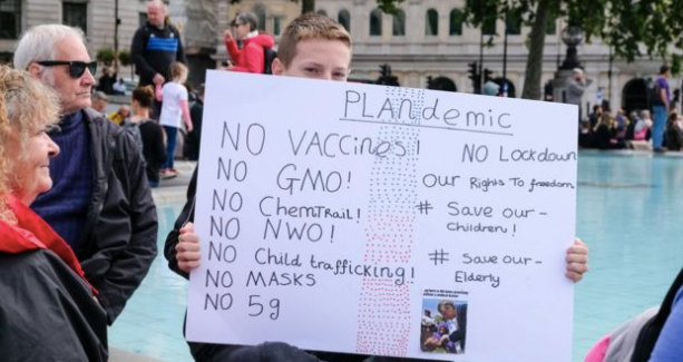 大量被「操縱思想」的抗議者們,被一些陰謀論洗腦,放棄科學轉而去相信一些偽科學的論調。
