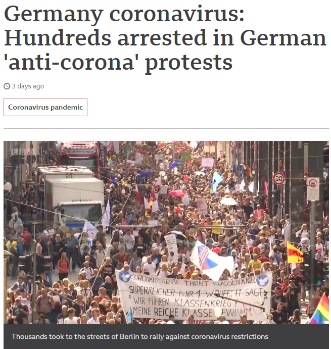 就在上周,大約3.8萬人走上柏林街頭抗議示威,拒絕為抵抗新冠病毒所施加的人身限制。