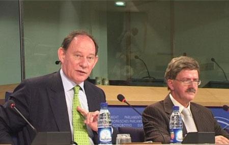 歐洲議會副主席斯科特(左)與「西藏小組」主席托馬斯·曼恩。