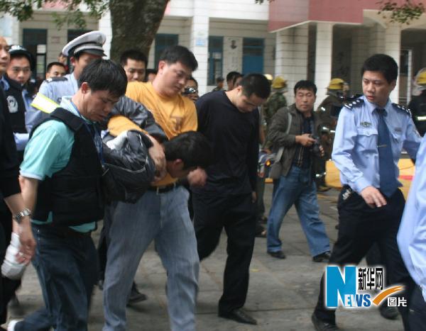現場目擊者告訴記者,案發後,兇手被該校老師圍堵在樓上。下午4時5分,公安民警將兇手抓獲。