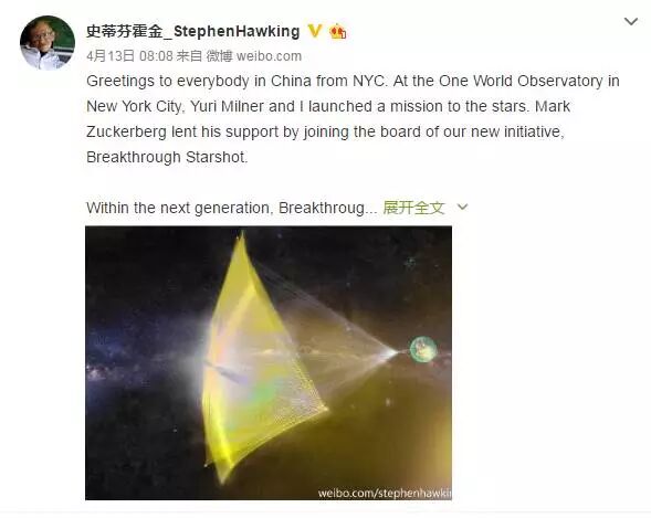 霍金髮微博要打造星際飛船 中國專家說太科幻