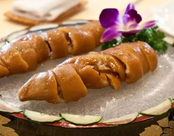 原料:豬蹄、香葉、蔥、姜、香糟鹵、料酒做法1.將豬蹄颳去豬毛洗凈,切成小塊;2.洗凈的豬蹄放入沸水汆3分鐘,洗去浮沫;3.鍋內加足量的清水、蔥段、薑片、香葉,將豬蹄放入鍋中,旺火燒沸后加料酒,用小火燒1小時左右; 4.將煮好的豬蹄過涼開水,洗去豬蹄表面的浮油,然後泡在涼開水中充分降溫;5.將冷卻后的豬蹄放入盛器,加入香糟鹵並淹沒豬蹄,加蓋入冰箱冷藏腌漬一夜;6.隔天取出裝盤即可。