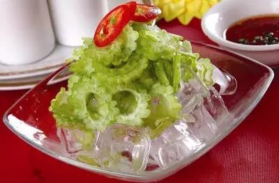 原料:苦瓜、蜂蜜、鹽、小米椒圈做法1.苦瓜洗凈斜刀45度切一毫米厚的片;2.鍋里燒開水,加點鹽,苦瓜片倒入燙半分鐘撈出過冰水;3.瀝干水份放碗中,加入適量蜂蜜拌勻。蓋保鮮膜放冰箱冷藏半小時;4.裝盤,用小米辣圈點綴下即可。