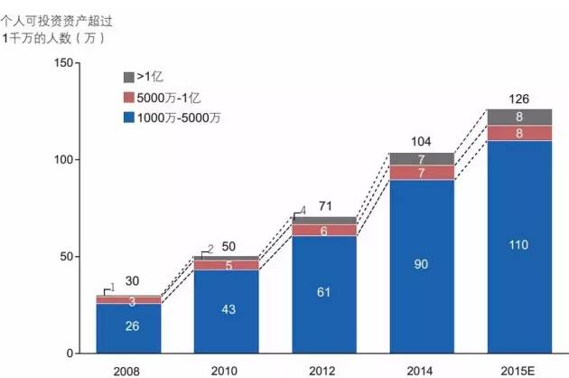 胡潤研究院發布的《中國超高凈值人群需求調研報告》中,將高凈值人群定義為個人資產1000萬元以上的人群,人口達121萬,約佔總人口的0.09%。中國的超高凈值人群,即總資產超過5億元人民幣的人群約17000人,佔全國總人口的約0.001%。