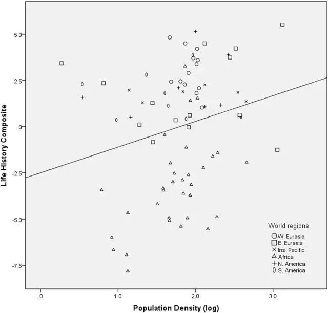 美國亞利桑那州立大學的學者發表在《人格與社會心理學期刊》(Journal of Personality and Social Psychology)上的研究表明,人口密度會切實地影響一個人的生活史策略。生活在高人口密度地區的人,會因為「人口密度」這個因素帶給個人心理上的影響,而選擇將建立家庭、生育等決策延後,投入更多在教育上,維持更長久的親密關係,在做選擇的時候看得更長遠。在生活的許多方面,比起數量而言,生活在高密度城市地區的人會更注重質量。