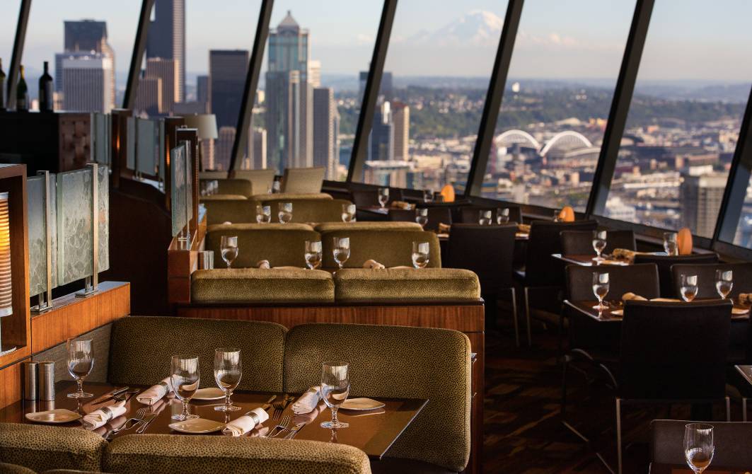 在著名搖滾巨星貓王Elvis領銜主演的音樂電影《獵艷情歌It Happened at the World』s Fair》中,貓王在西雅圖市中心搭乘單軌電車到達太空針塔的鏡頭已成為電影史上的經典。而片中貓王在天空之城餐廳(SkyCity Restaurant)里的用餐也讓大家認識了這個有著完美用餐體驗的高檔餐廳。
