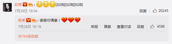 ▲付出總是會有回報的,小妮子前不久就被偶像趙薇翻牌,楊紫也是激動地表示感謝,成功地演繹了追星的正確打開方式。
