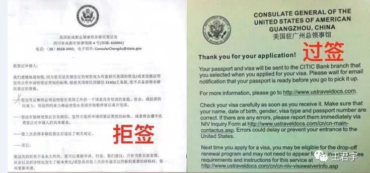 -移民法214b條款:只要針對未移民簽證。未能表明自己擁有美國境外不可放棄的住所或未能證明自己的非移民傾向。如果因此被拒,將需要重新申請。