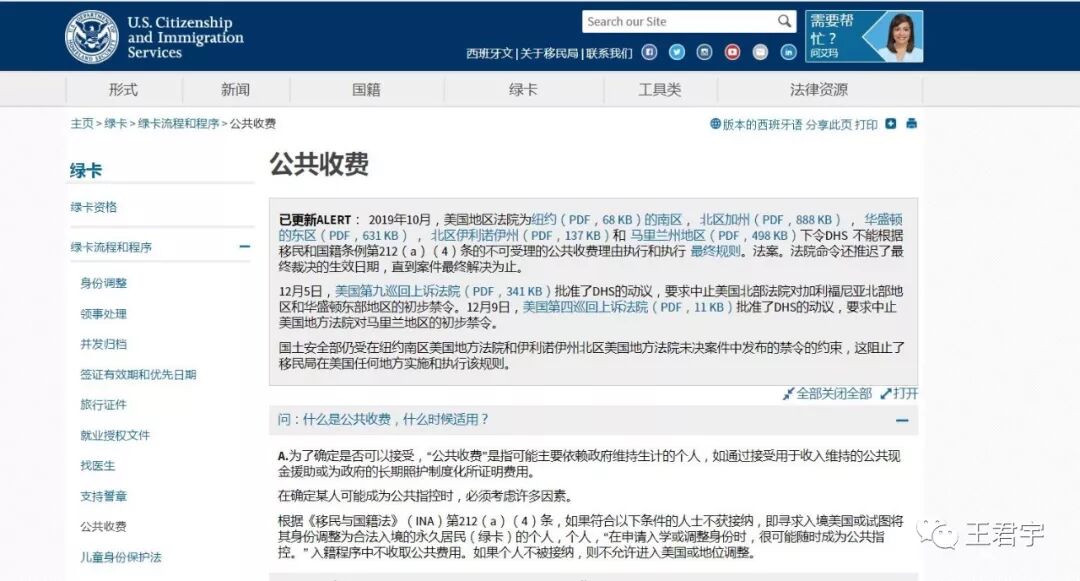 紐約聯邦上訴法院昨天拒絕取消對特朗普政府「公共收費」規則的禁令,該規則將限制被認為可能依賴福利的移民綠卡。去年十月份,紐約的一名聯邦法官對這項禁令生效的全國性禁令作出了規定。特朗普政府提出了上訴,但是第二上訴法院的小組拒絕在對案情進行簡報之前取消該案,案情簡報將於2月結束,隨後在3月進行口頭辯論。上訴法院否定司法部即刻解除禁令的動議,對紐約州及全國被邊緣化,被貶低低身份的移民而言,是一個勝利。 加州州長加文。紐瑟姆 (Gavin Newsmon) 川普政府2018年宣布改變「公共負擔」定義,將社會安全補助金(Supplemental Security Income,簡稱SSI)、家庭急救金(Temporary Assistance for Needy Families)、醫療補助計畫(Medicaid)及糧食券(SNAP )等福利都納入「公共負擔」;若移民在申請綠卡前36個月內,領取超過一項以上公共福利超過12個月,將難以獲得綠卡。一旦被標記為「公共負擔」,移民將被拒絕綠卡,簽證和其他形式的合法移民身份。 公共收費定義 該規則遭到了紐約州,紐約市,康涅狄格州,佛蒙特州和一些非營利組織的質疑。批評人士說,這將對低收入移民和有色移民產生不成比例的影響。但是該規則的支持者說,擴大 「公共收費」 的含義有助於「保護美國納稅人,並確保該國的非公民能夠自給自足,而不會對公共資源造成壓力。 規則支持者遊行 最新的規定表示申請綠卡時享受非現金福利的情況目前不會被考慮在公共負擔審核範圍之內。但是,美國國土安全部下屬的美國公民及移民服務局發言人對此規則仍然非常有信心,相信客觀的司法機關會認為這項規則完全符合現行法律。因此,未來這一規定是否還會有其他變動還是個未知。如果你還沒有身份或正有申請的打算,趕緊找律師著手幫你做移民申請吧,因為以後的移民申請可能會越來越難通過。所以,你更需要聘請一個有經驗的好律師來幫你分析案件,儘快拿到身份。 王君宇律師樓微信號 ☞w7183539264專精各種疑難案件:移民,刑事,告警察/政府。我們有最優質的服務,最專業的律師和助理團隊。王君宇律師服務華人社區十幾年,幫助無數客人打消遞解令獲得身份。為無數客人在刑事辯護中獲得最好的結果。王律師一直走在法律的最前線,王律師總是能洞悉新的法律信息從而給予客人最好的幫助。